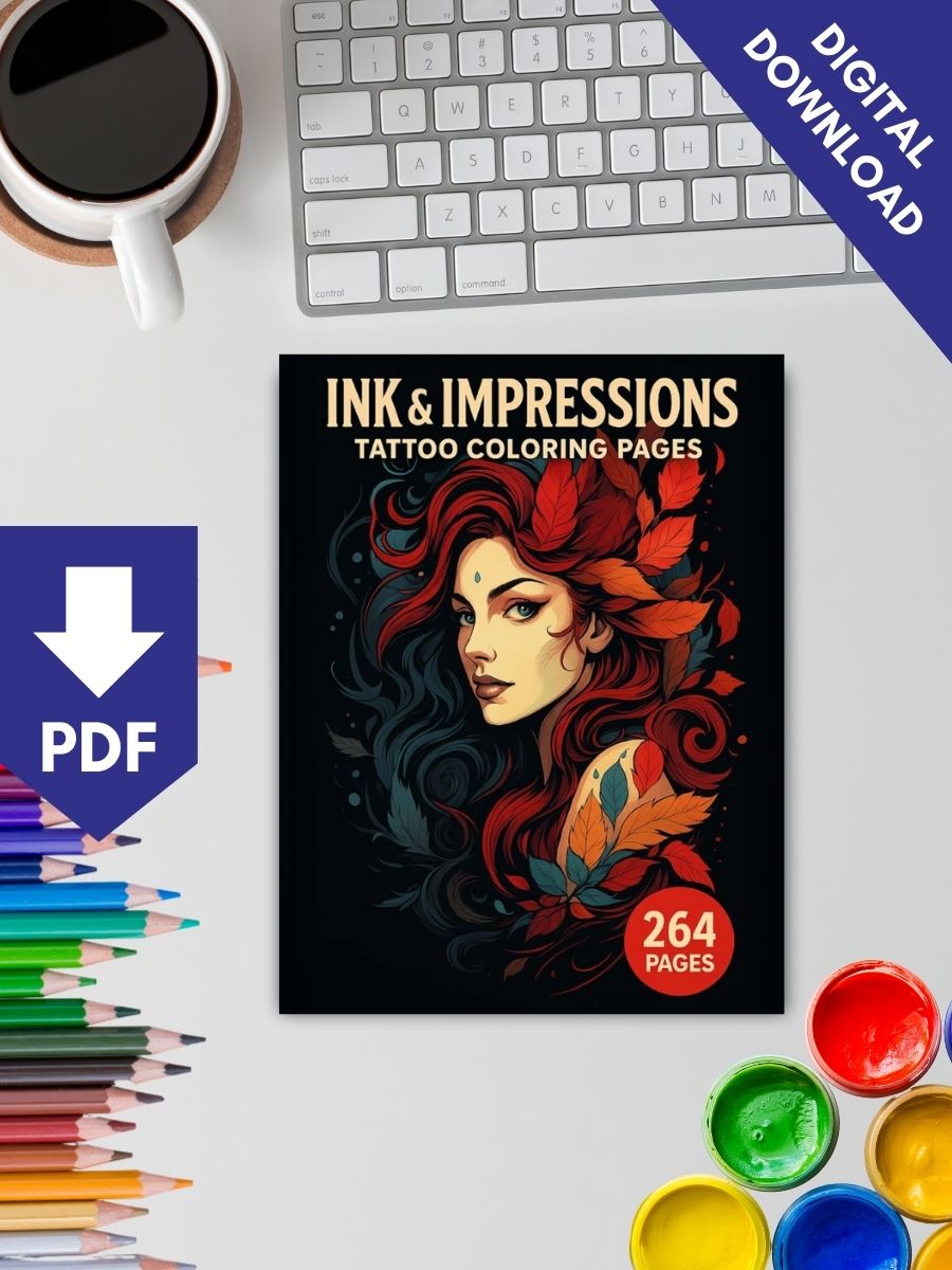 "Ink & Impressions – 264 Tattoo Coloring Pages" - Product Details